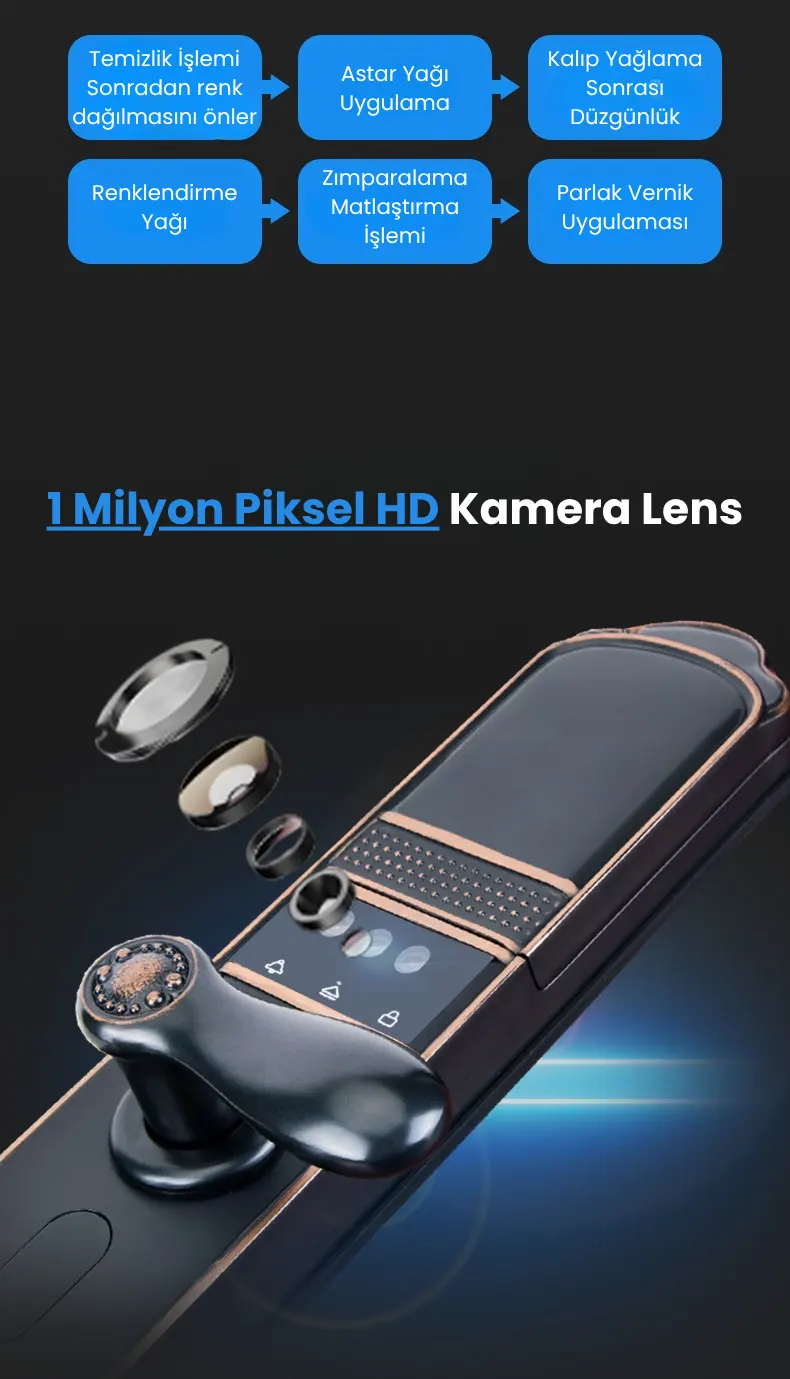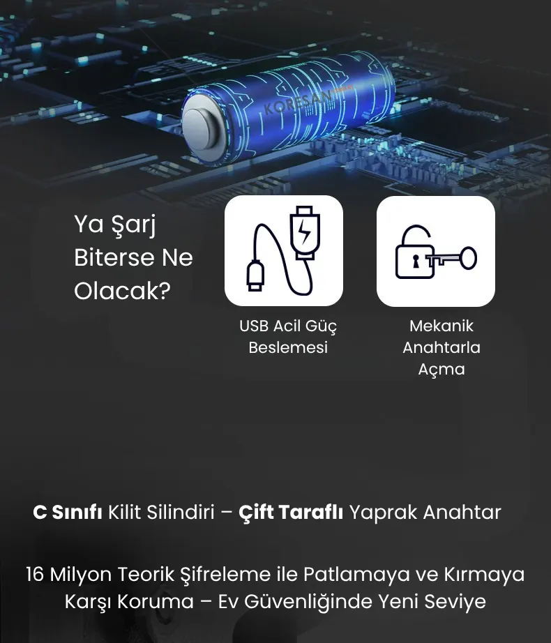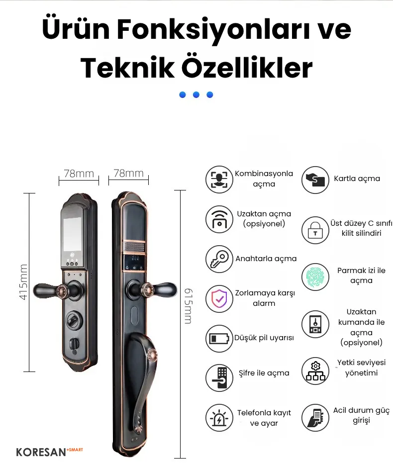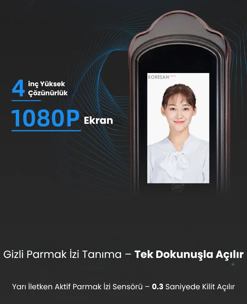🔒 Yüz Tanıma, Parmak İzi, Şifre, Kart ve Anahtar ile çoklu kilit açma seçeneği