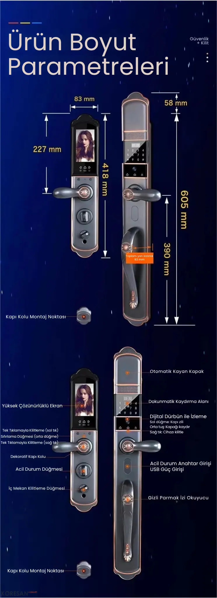 • Çift kapılı ve sahte kilit teknolojisi ile ekstra koruma