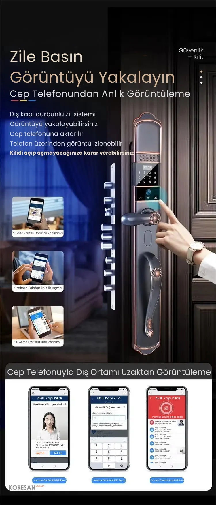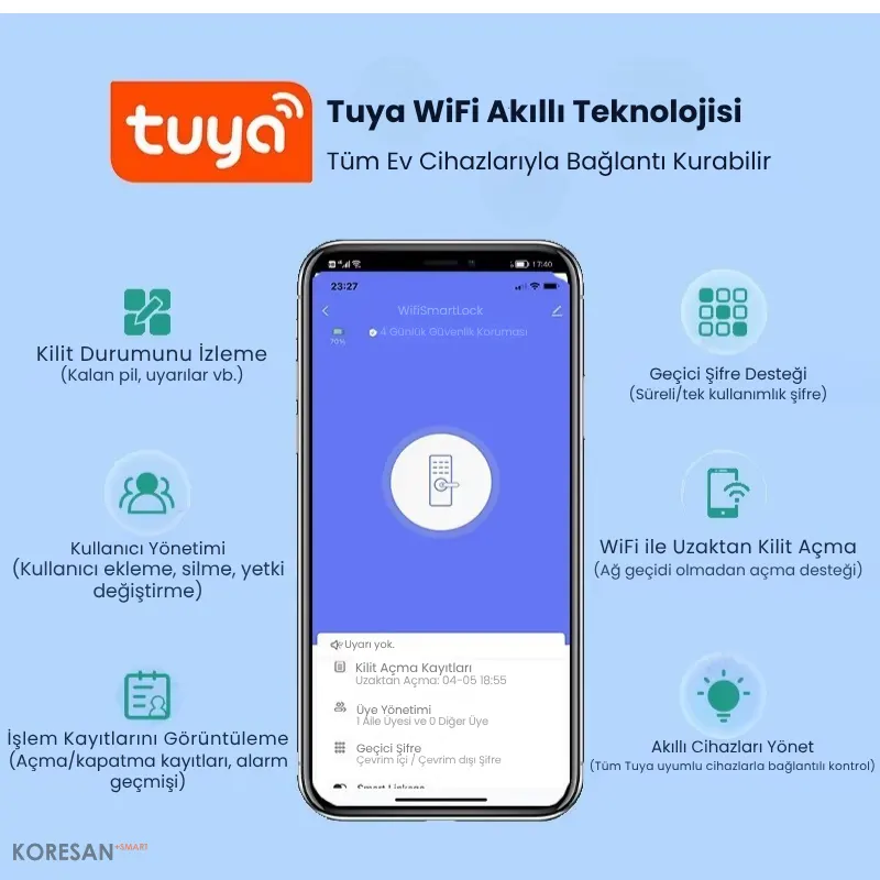 • Tuya App üzerinden uzaktan kilit açma ve anlık görüntüleme
