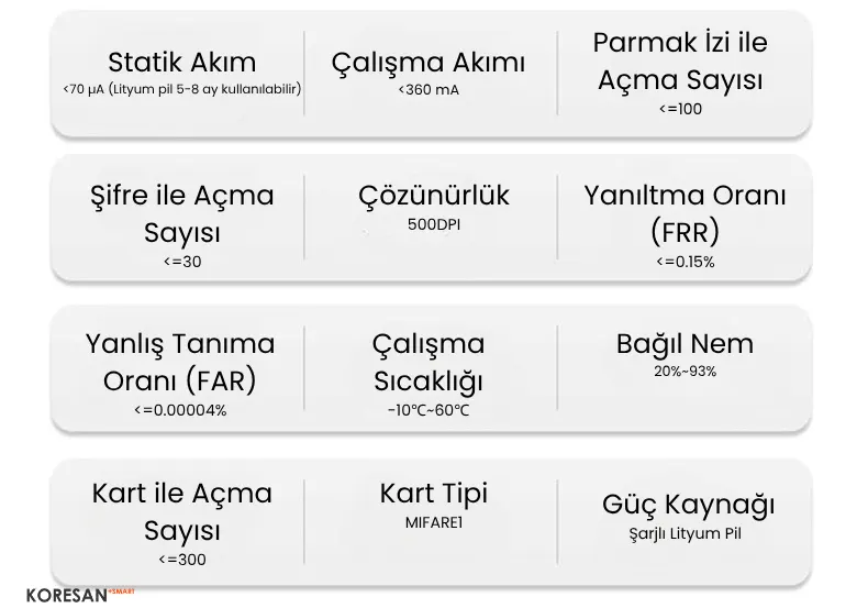 • Parmak izi kapasitesi: ≤100 kayıt